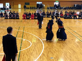 | 女子団体決勝 興譲館 対 西大寺 | 男子個人決勝 丸山 対 岡村 |